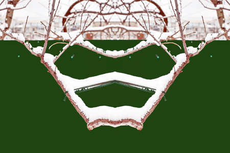 A heart shaped tree covered with snow. Valentine's greetings