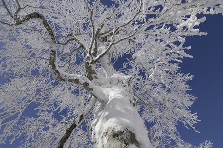 Snow-covered tree after heavy snowfall.
