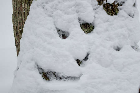 Snow on a tree in the form of a face - the effect of pareidolia