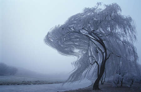 weeping willow during a winter storm, abstraction