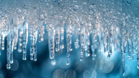 close-up of icicles on a blue background - macro photo