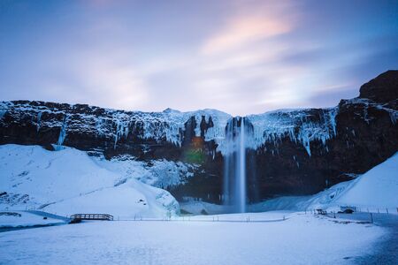 Iceland seljalandsfoss waterfall, winter in Iceland, seljalandsfoss waterfall in winter