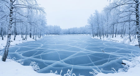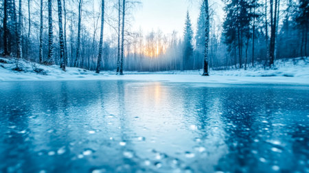 AI Generated. Frosty Reflections on a Shimmering Surface in Winter Landscape