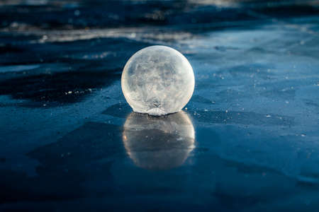 Texture, patterns on pond ice on Christmas Eve. Winter background