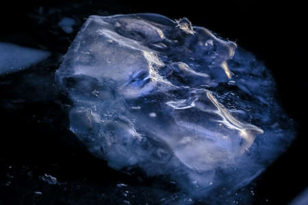 Texture of ice of Baikal lake in Siberia. blue lake ice.