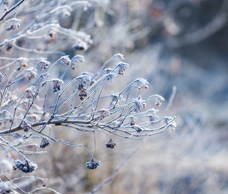 Frost on plants and branches, minimal, detailed