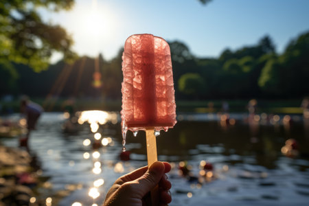 A delicious popsicle glowing in the sunset capturing summer's sweet joy.