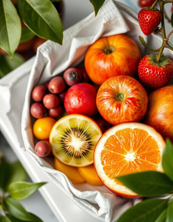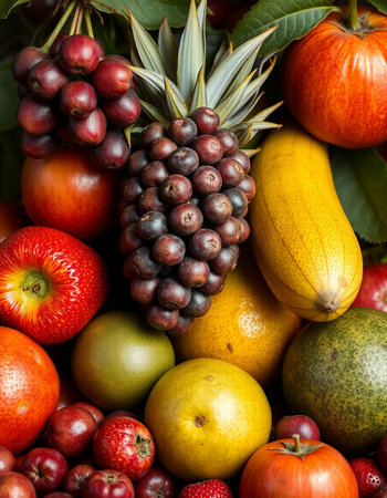 A vibrant arrangement featuring assorted fruits and vegetables, showcasing their natural beauty and freshness. Perfect for culinary and health-themed projects.