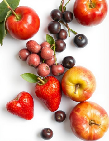 Fruits and berries on a white background. Healthy eating concept.