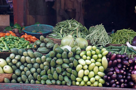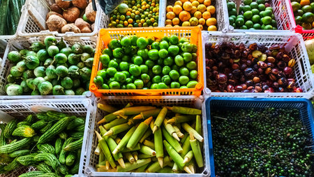 Image of Fresh Ripe Organic Vegetables in local market, Thailand