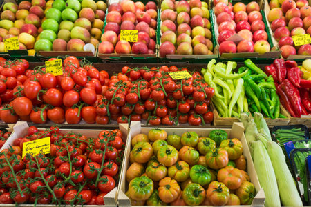 Various colorful fresh vegetables in the fruit market, Catania, Sicily, Italy
