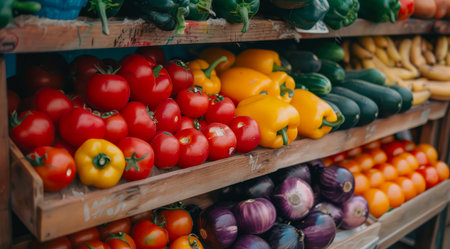 Fresh Organic Vegetables at Farmers Market Display including Vibrant Tomatoes, Crisp Lettuce, Lush Broccoli. Healthy Eating, Sustainable Agriculture, Farm Fresh Produce. National Agriculture Day.