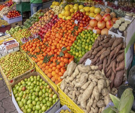 A Colorful fruit and vegetable stall in local Mexican greengrocer