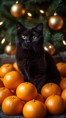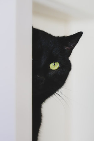 Portrait of sinister black cat with green eyes looking