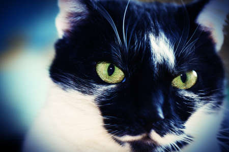 Portrait of a black and white cat