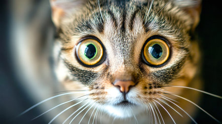 Yellow eye, tabby muzzle cute cat, closeup