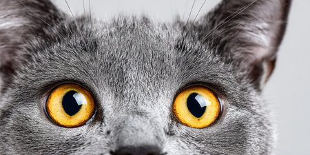 Look of adult pretty gray cat with yellow half-tone eye