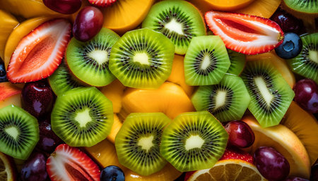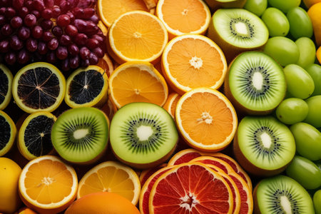 Vibrant assortment of freshly sliced fruits. Generative AI illustration