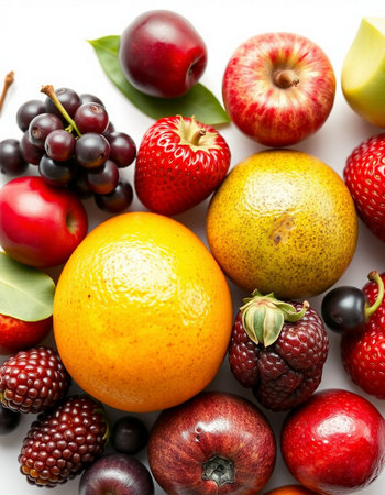 Fruits and berries on a white background. Healthy food concept.