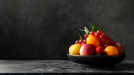Fruit Salad, Black Surface Table, minimalistic decor