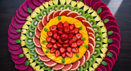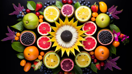 Symmetrical arrangement colorful exotic fruit