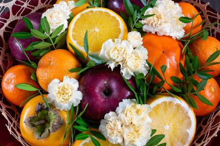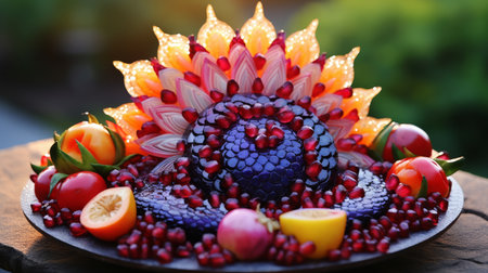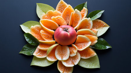 Mandarin and pomegranate in the form of a flower