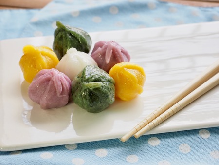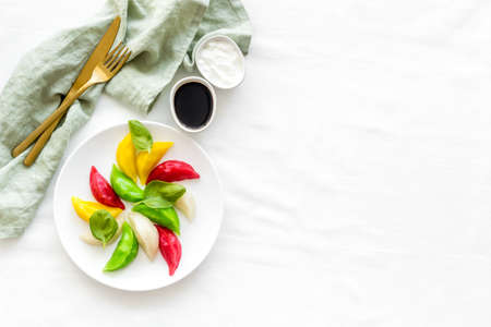 Steamed dumplings tio view. Vegetables ravioli on white plate