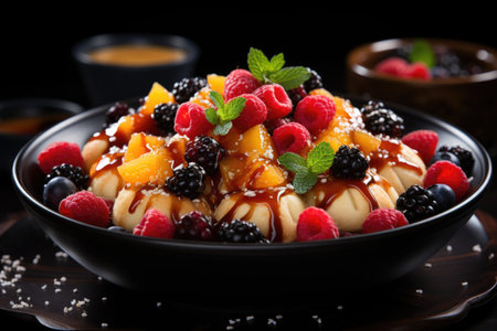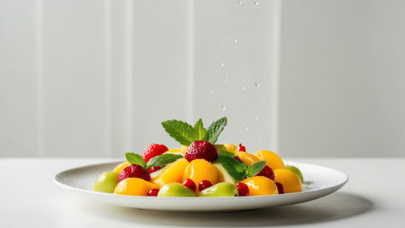 AI Generated. Fresh Fruit Salad with Mint Garnish in Dish