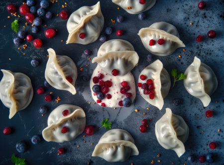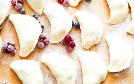 dumplings with bilberry, homemade traditional Ukrainian dish varenyky.