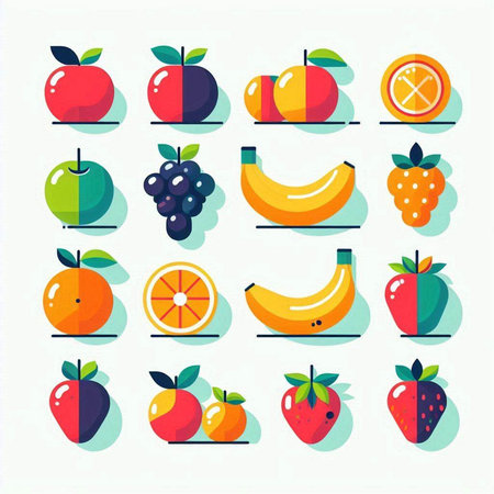 A colorful arrangement of fresh fruits including bananas, apples, oranges, pears, and grapes showcased on a vibrant background. Ideal for health, nutrition, and wellness themes.