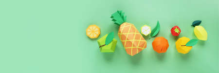 exotic fruits made of paper on green background