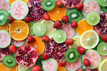 This digital image features an exquisite fruit pattern that showcases the beauty of fruits and fruit slices.