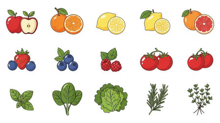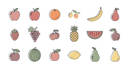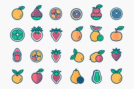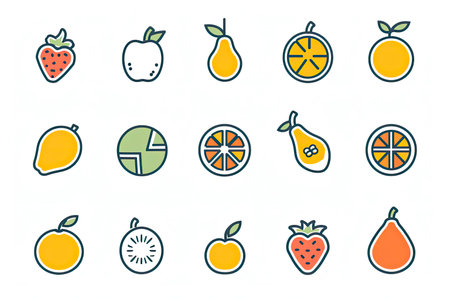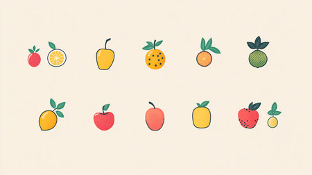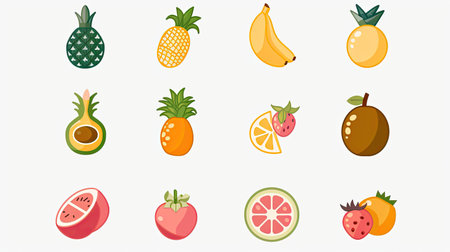 A collection of vector icons depicting fruits.