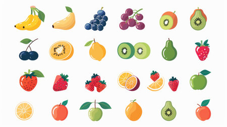 White background with a set of fruit icons, flat style for print and web design