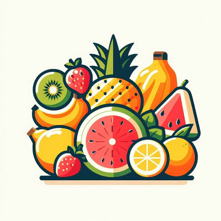 Fruits vector illustration. Colorful flat design. Healthy food concept.