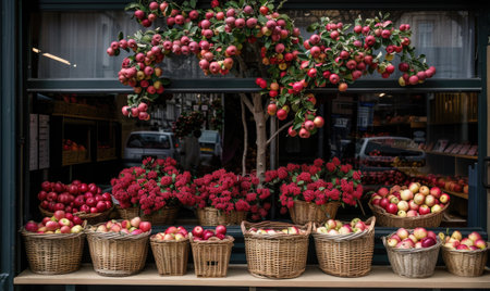 Beautiful Spartan and Empire autumn dark red apples and plums background