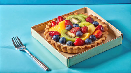 A colorful fruit tart ready to be enjoyed.