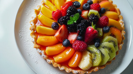 Delicious and vibrant fruit tart with assorted fruit toppings