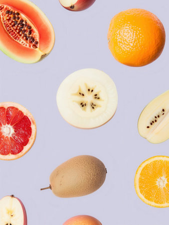 This digital image features an exquisite fruit pattern that showcases the beauty of fruits and fruit slices.