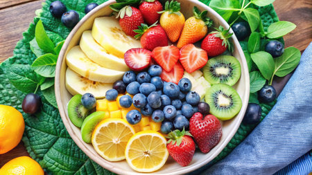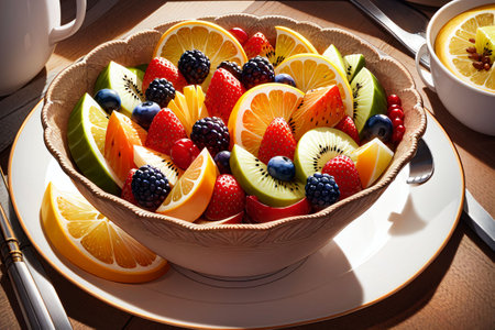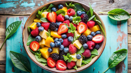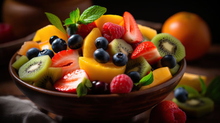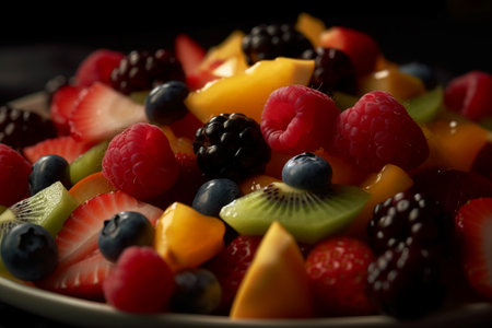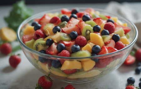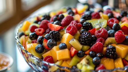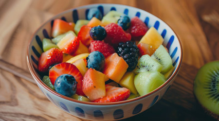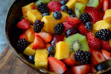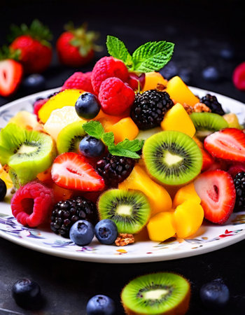 Fresh and vibrant fruit salad with assorted berries and kiwi