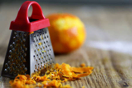 A close photo of the hands of a woman who is separating the lemon zest with a grater in the kitchen