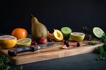 board and knife arranged to prepare a fresh and healthy meal, created with generative ai