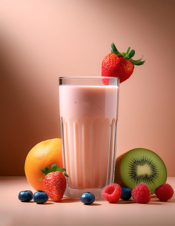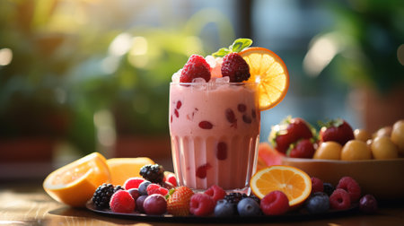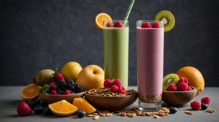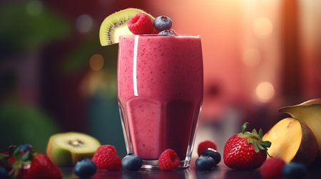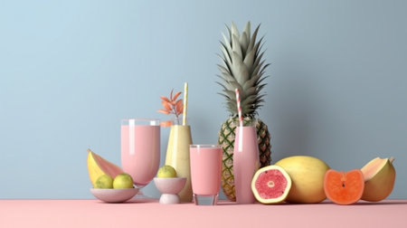 AI Generated. Fresh Smoothies with Fruit Garnishes in Ambient Lighting