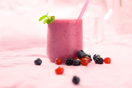 Fruit smoothie with strawberry, blueberry, orange and mint