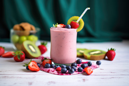 Healthy berry smoothie with kiwi, raspberries and blueberries