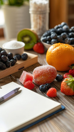 vibrant fruit-shaped vitamin d gummies, representing a healthy lifestyle concept in the background