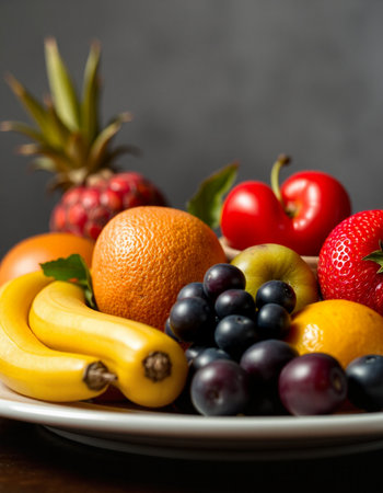 AI Image Fresh Colorful Fruit Plate with Kiwi, Berries, and Citrus