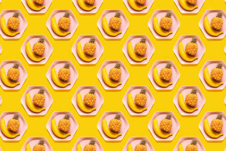 Pattern of fresh fruits isolated on creative colored texture