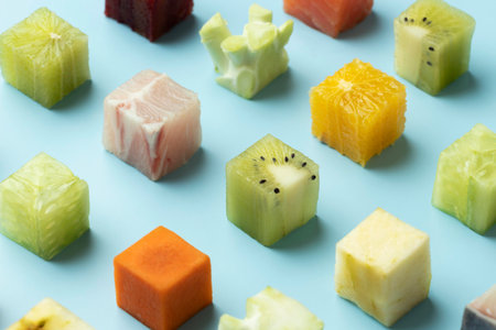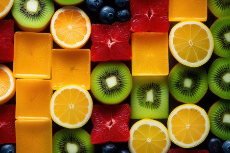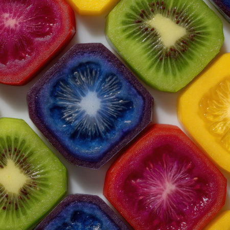 Colorful fruit slices arranged in geometric pattern