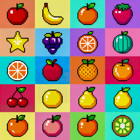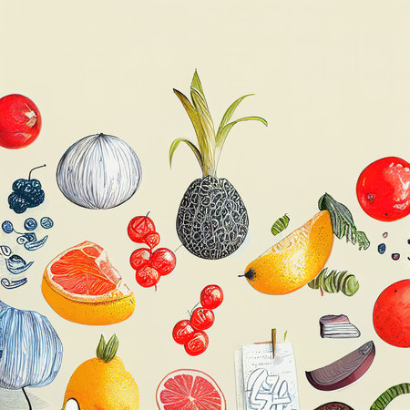 Enjoy a vibrant display of summer fruits in pop art style, offering refreshing flavors and textures perfect for the season.